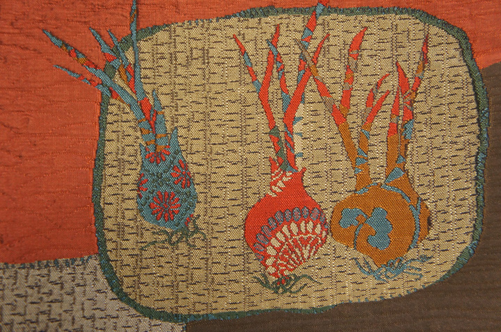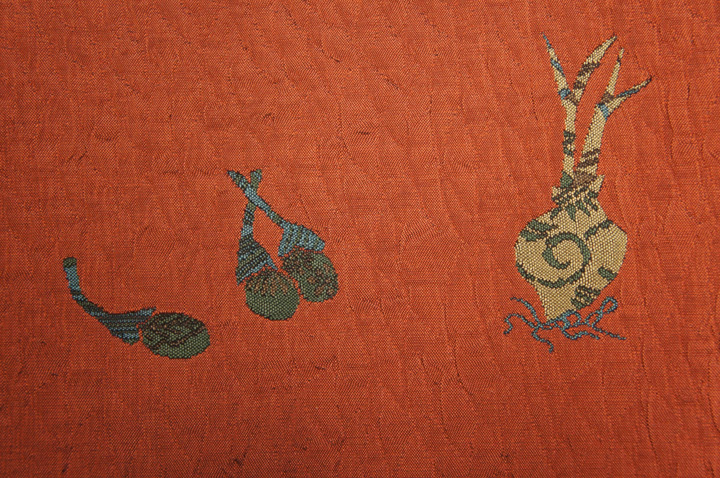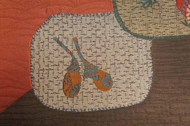 正絹うす海老茶橡ねず染分くわい茄子模様未着用袋帯O10180 收藏