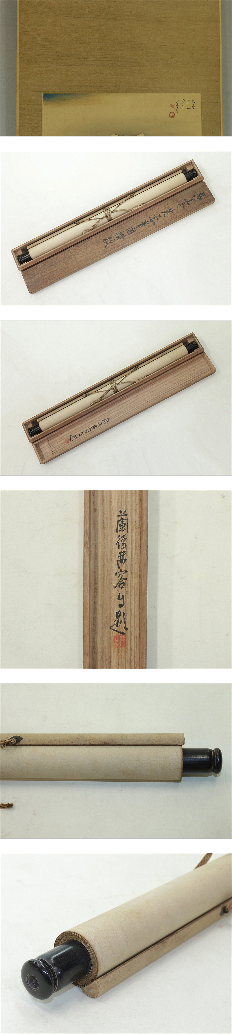 山中蘭径 やまなか らんけい 美術研究家。秋田県生。独学で絵を学び、池大雅・浦上玉堂ら 江戸時代の文人画や富岡鉄斎の研究で名を馳せる。 自ら南画を能くする他、硯についての造詣も深く、 また文学・絵画・書跡界の第一人者達と親しく交友した。昭和50年(1975)歿、92才。 本紙は、染み、汚れ、ヤケがあります。 表装は、染み、汚れ、折れ、皺、ほつれ、破れがあります。 【サイズ】 作品 横約43cm×縦約32cm 表装 横約55.5cm×縦約154cm |