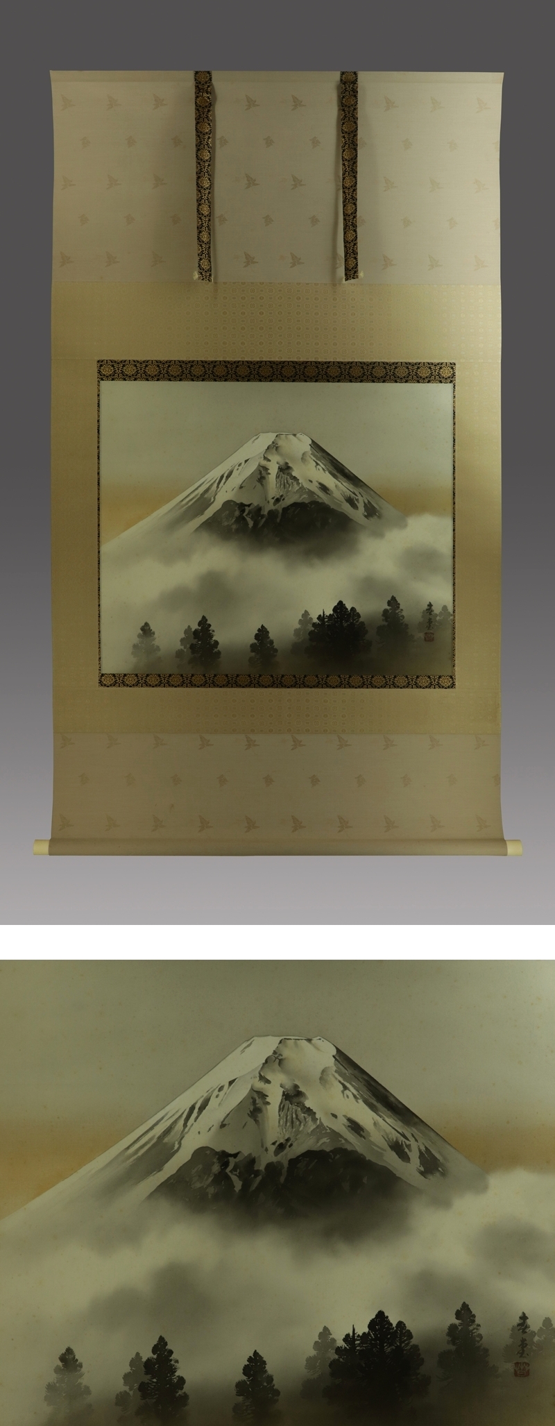 №2112048【真作】吉井春堂【大幅・霊峰】◆絹本◆共箱◆掛軸 | |