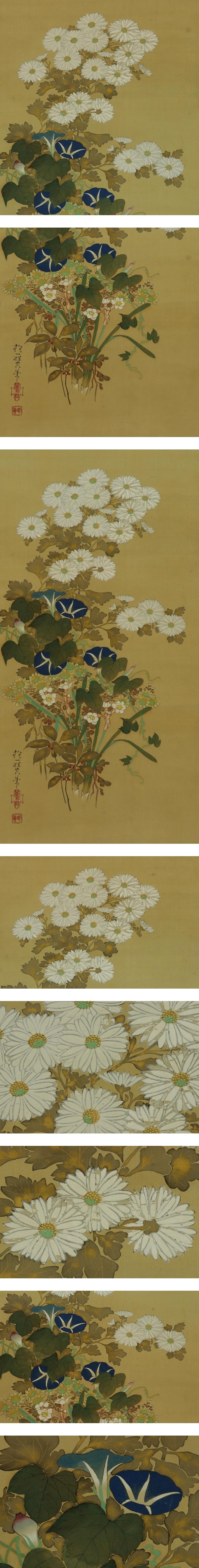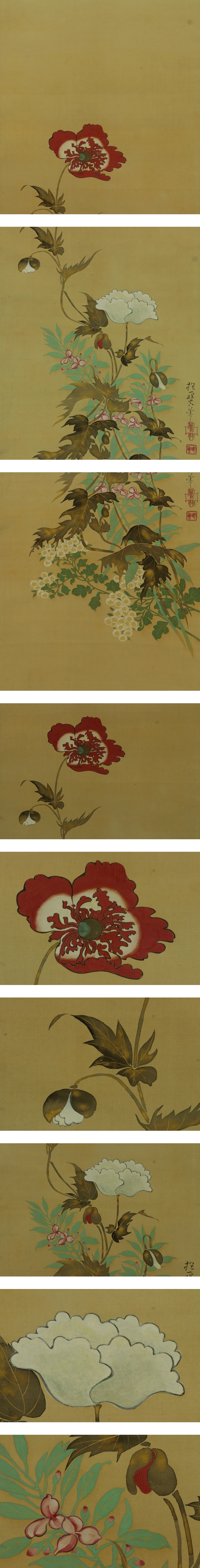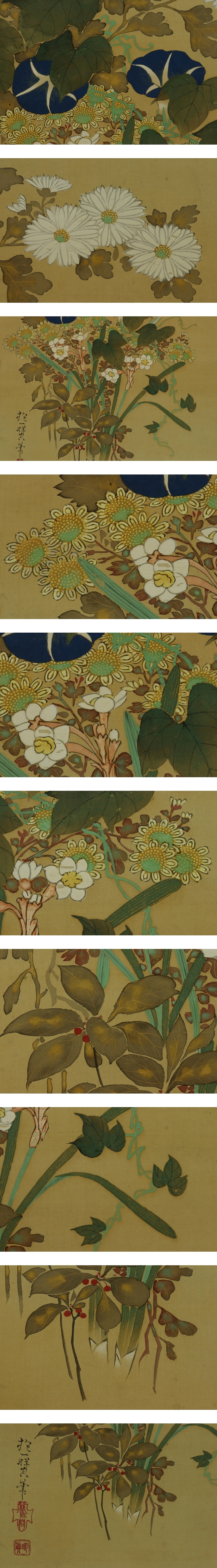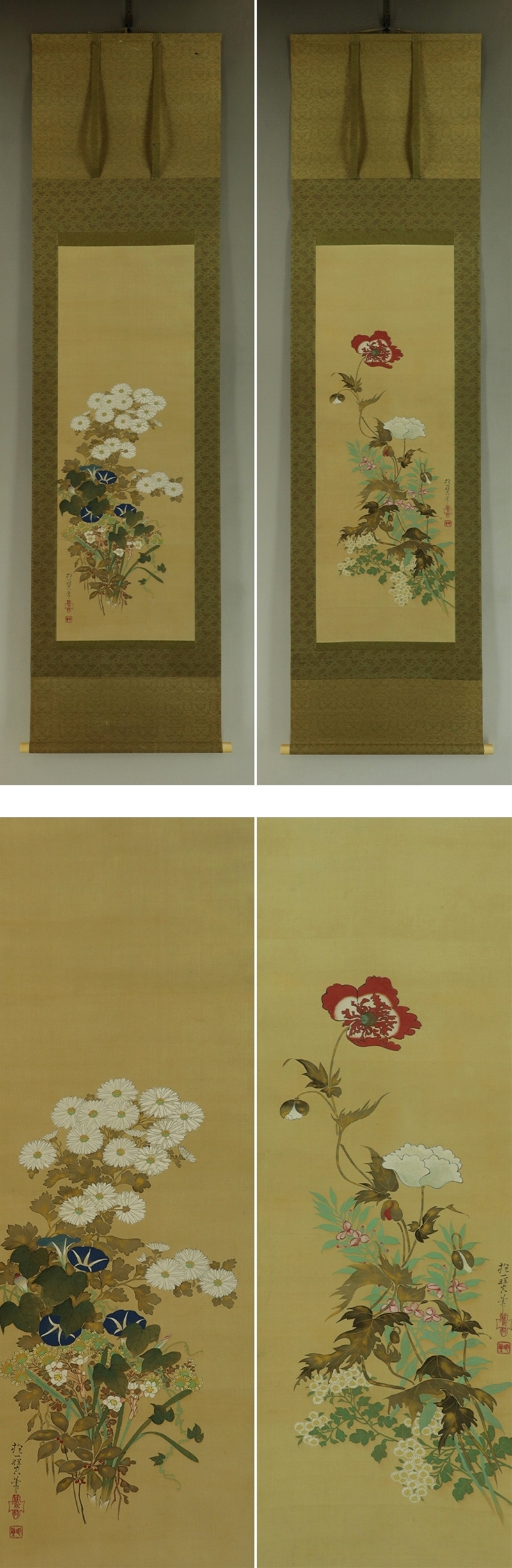№2408032【模写】酒井抱一【双幅・花卉図】◆絹本◆合箱◆掛軸 | |