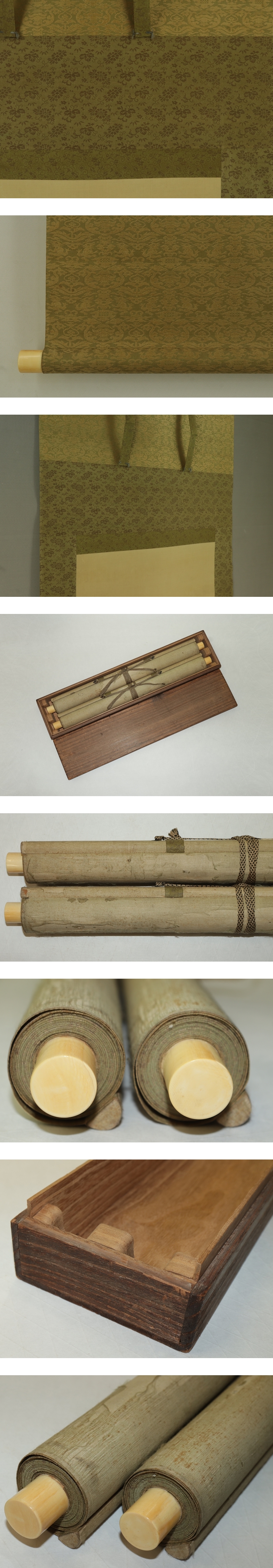 酒井抱一 さかい-ほういつ(1761-1829) 江戸時代中期-後期の画家,俳人。 宝暦11年7月1日生まれ。酒井忠仰の次男。播磨姫路藩主酒井忠以の弟。 37歳で出家し,文化6年江戸根岸に雨華庵を営む。 絵を狩野高信,宋紫石,歌川豊春に学び,のち尾形光琳に傾倒。 「夏秋草図屏風」など琳派風の絵を描いた。俳諧にも優れた。 文政11年11月29日死去。68歳。江戸出身。 名は忠因。字は暉真。通称は栄八。別号に鶯村など。 本紙は、染み、汚れ、軽い折れ、皺、ヤケ、剥落があります。 表装は、染み、汚れ、軽い折れ、皺、虫食い、破れ、ほつれ、箱に破損があります。 【サイズ】 作品 横約35.5cm×縦約102.5cm 表装 横約49cm×縦約186cm |