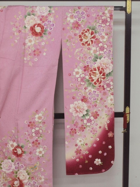 お買い得 0418 御仕立て上がり 正絹京友禅振袖 ピンク地 四季草花 收藏