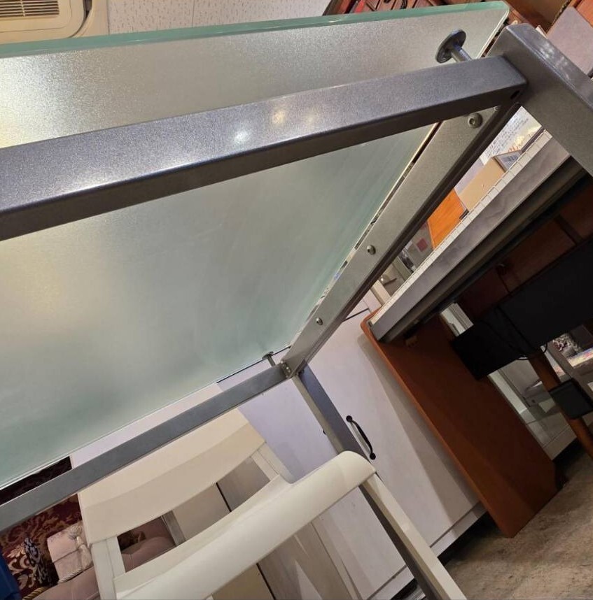 ガラス天板とすっきりしたフォルムのフレームの組み合わせは