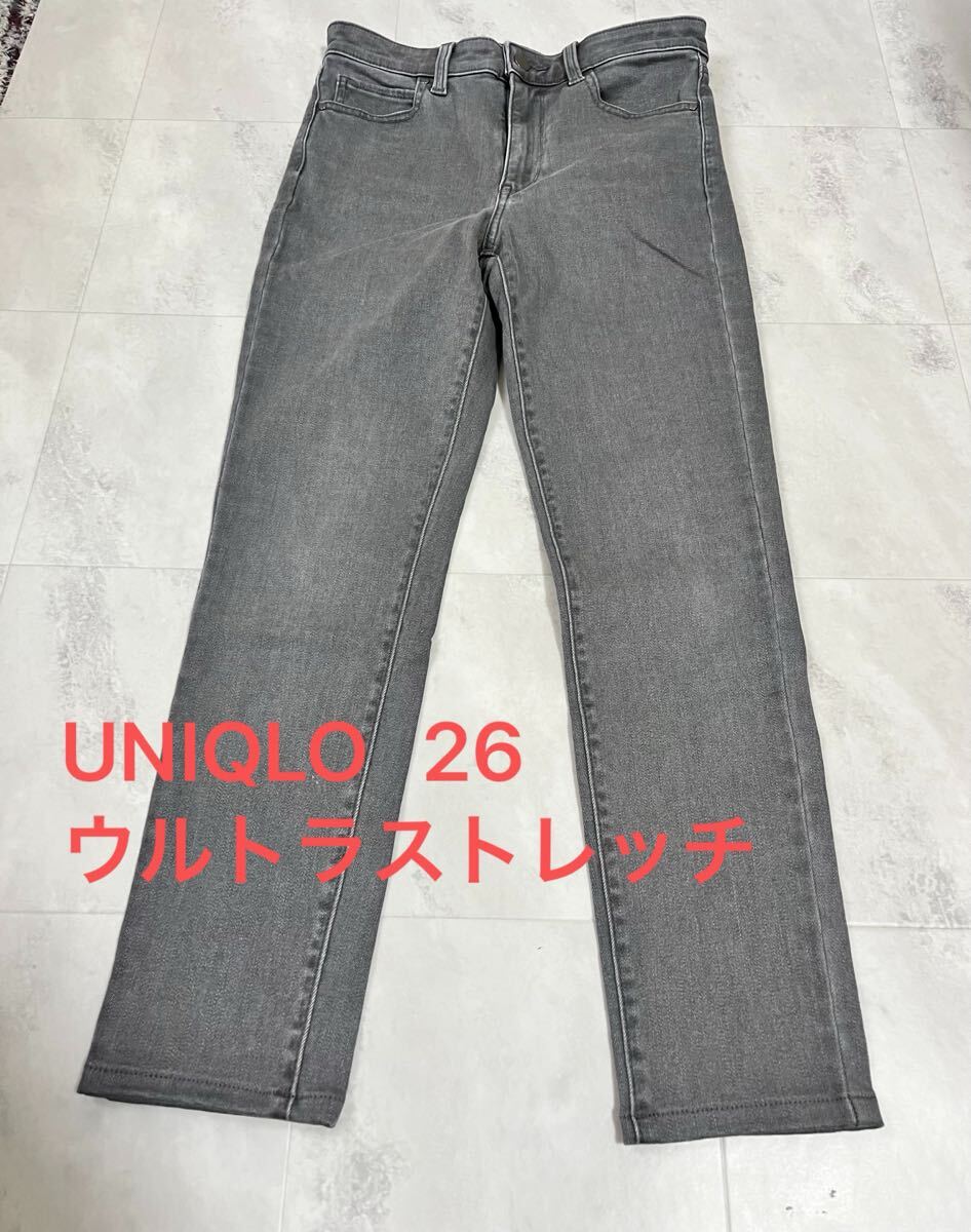 ユニクロ UNIQULO ウルトラストレッチジーンズ グレー 灰 ハイライズ テーパード デニム ジーンズ 26 66CM 收藏