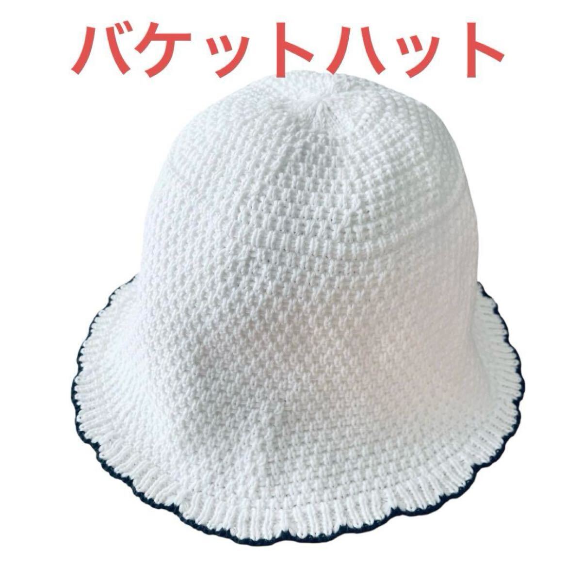 帽子 バケットハット 美品 ホワイト ネイビー 白紺 ニットキャップ フリーサイズ ニット帽 メッシュ チューリップ レディース 收藏