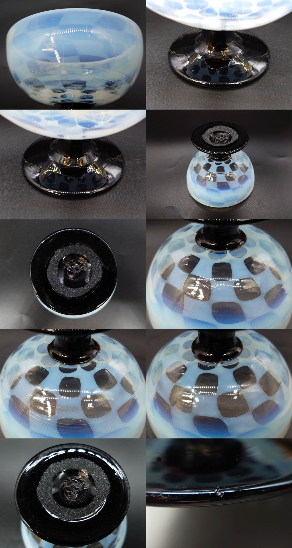 R-082874 大正期 碗型 乳白 市松模様 エナメル脚 個性的なデザインが魅力の氷コップ(グラス、硝子、和ガラス) 收藏