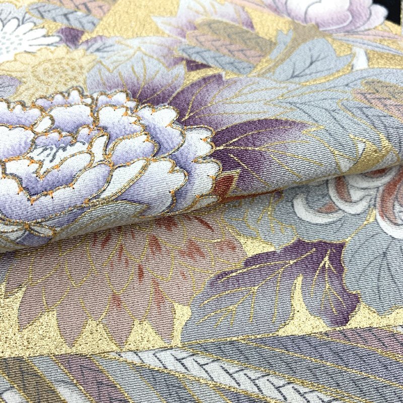 | 〇黒留袖 牡丹 菊 扇 くす玉 五つ紋 金彩 金駒刺繍〇美品 (No.n) 牡丹や菊などの花、扇、くす玉などが染め出された黒留袖です。金彩や金駒刺繍が施され、光の加減で輝きが増します。五つ紋で、紋の種類は「松皮菱」です。比翼付き。 (画像の帯408my64や小物は参考商品で、本品には含まれません) 左後身頃、裏に点シミがございますが、近くで見ないとわかりません。衿山に使用汚れや折跡がございます。 【表地素材】正絹 【色】黒 *モニターによって色味は実際と異なる場合がございます。 【サイズ】裄:65.5cm、丈(肩から):160.5cm、袖幅:31cm、袖丈:49.2cm、前幅:24.5cm、後幅:30cm、裄の縫込み 身頃側:1.5cm、お袖側:1cm、内揚げ幅:1.8cm *素人採寸のため、多少の誤差はご容赦ください。 上質な逸品ですので、いかがでしょうか?よいお品物でお勧めです^^ | |