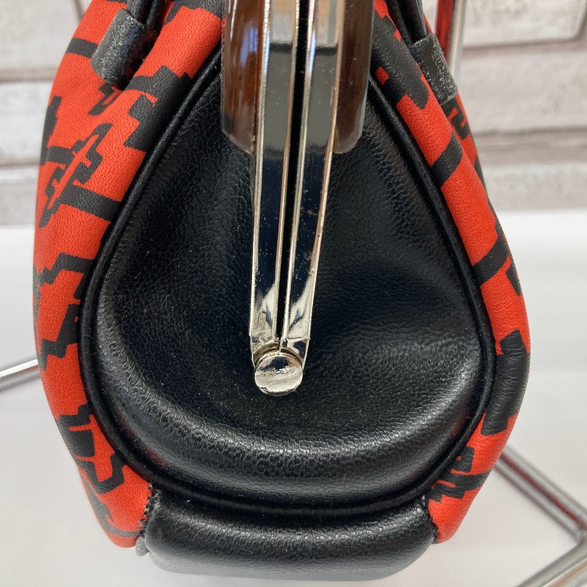 和装 和風 ハンドバック がま口 朱色 柄入り 現状品 TH7.062 /11 收藏