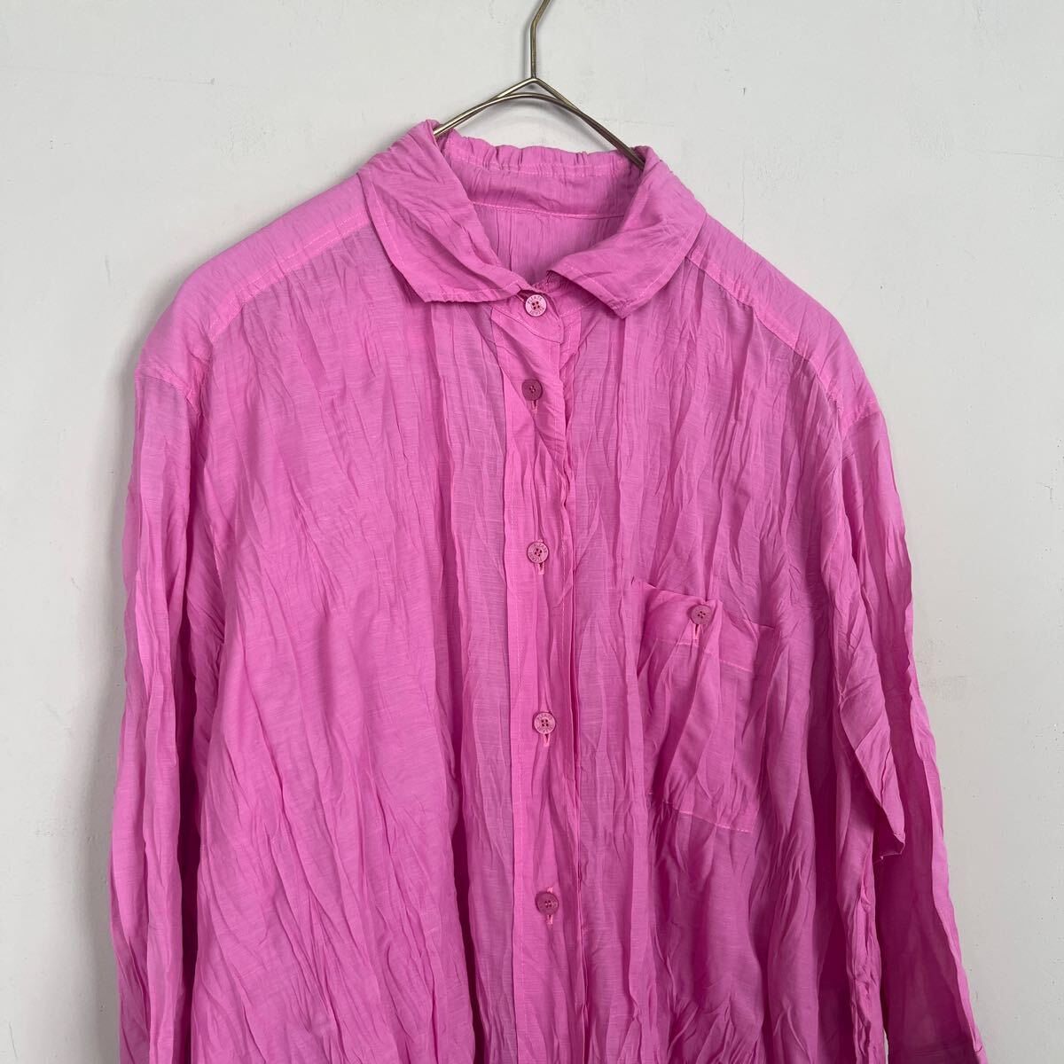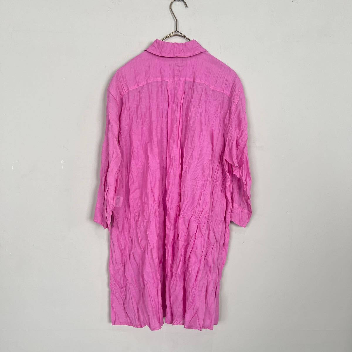 PLEATS PLEASE プリーツプリーズ ISSEY MIYAKE イッセイミヤケ 捻りシャツ シャツワンピース pink シワ加工 7部袖 リネン混 レディース 3 收藏
