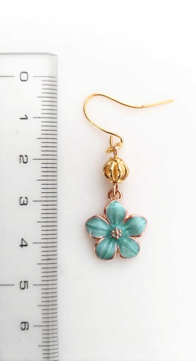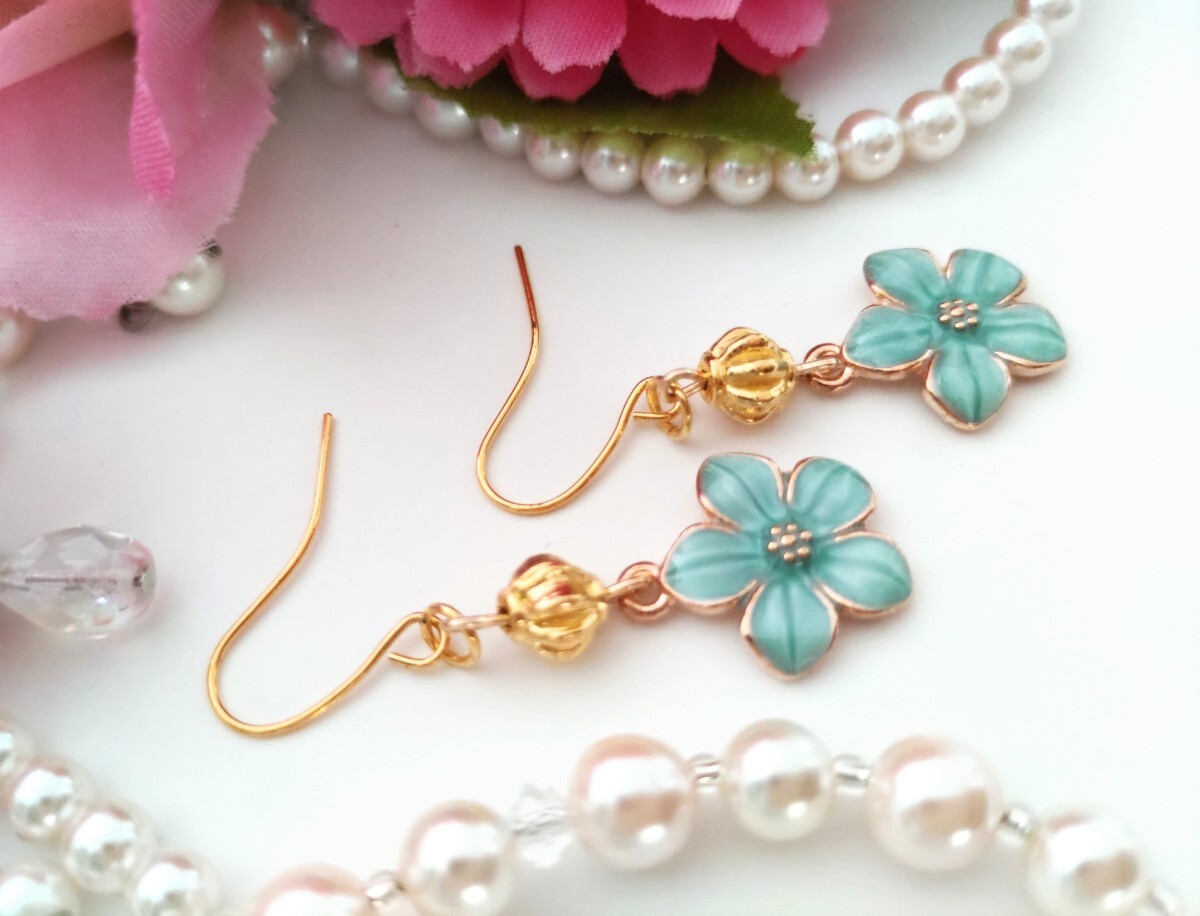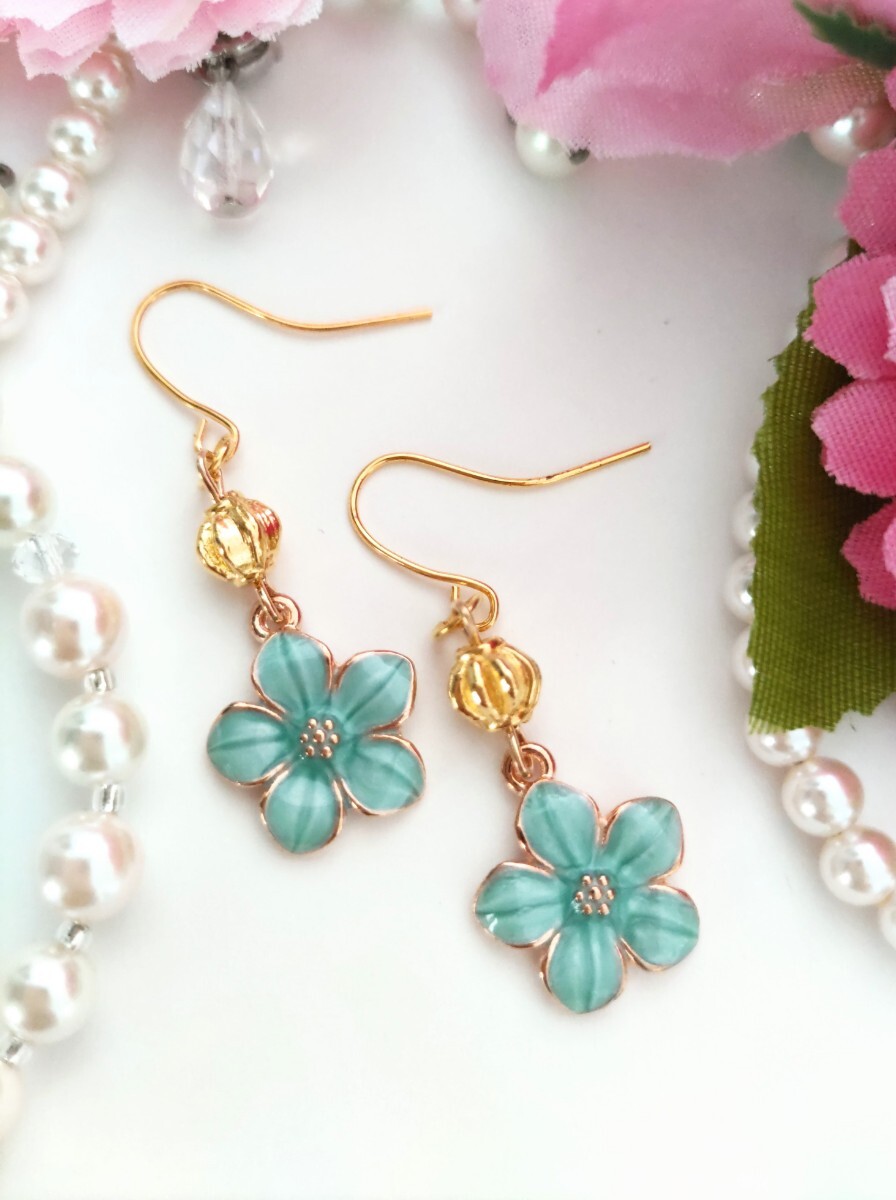 ハンドメイド ピアス 花 ビーズ ブルー 揺れる 可愛い イヤリングに変更可能(有料) 收藏