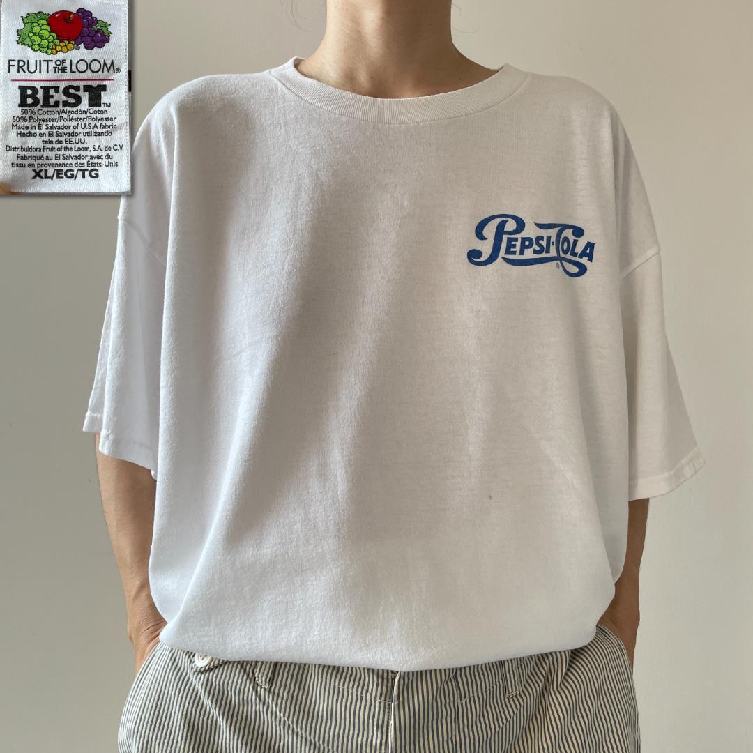 GG273 90s Tシャツ ペプシコーラ 旧ロゴ PEPSI-COLA プロモ ビンテージ 古着 シングルスチック XLサイズ フルーツオブザルームタグ 白T 收藏