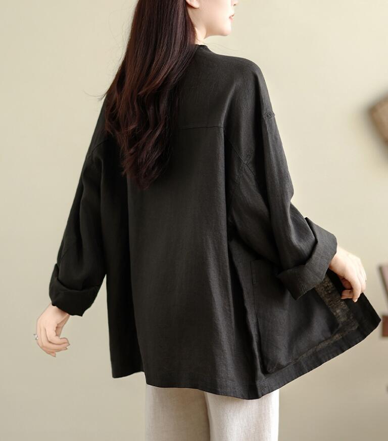 同梱1万円送料無料■カジュアル リネン ライトアウター レディース リネンコート パーカーコート 着やせ 長袖 ミディ丈コート■ブラック 收藏
