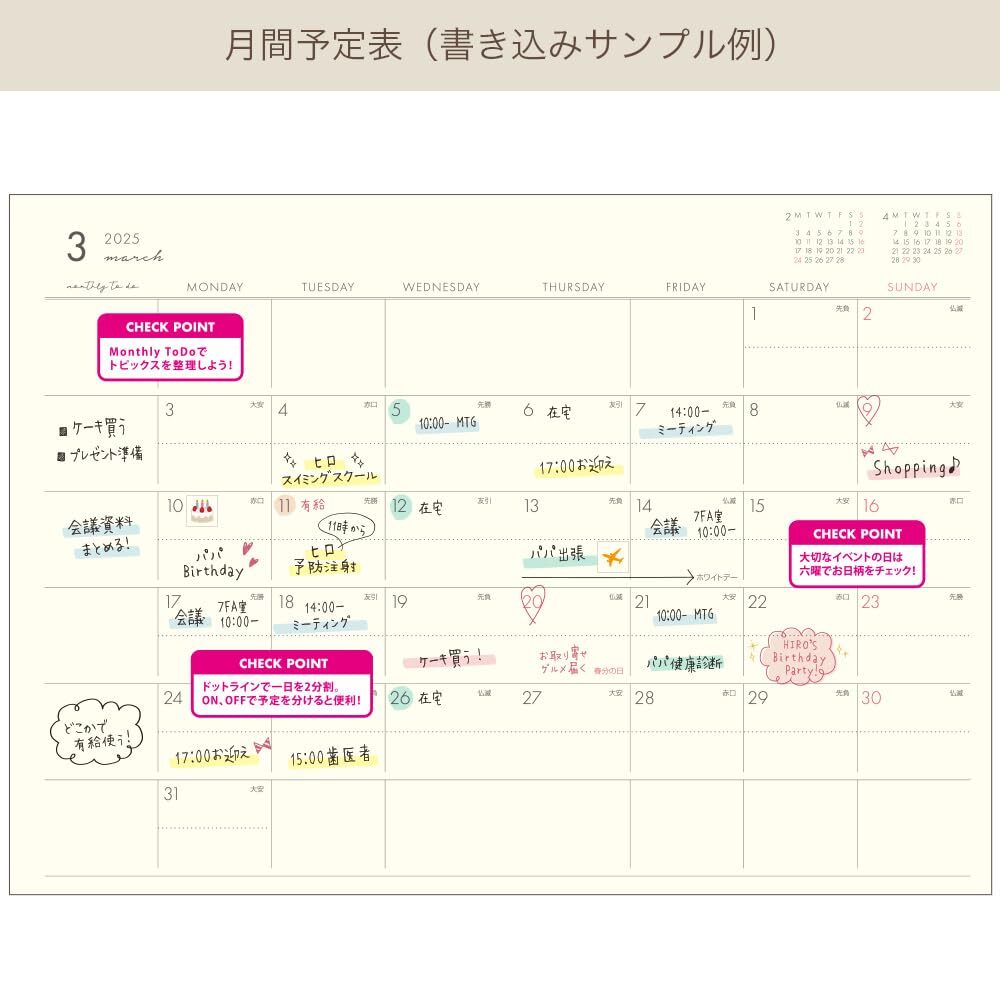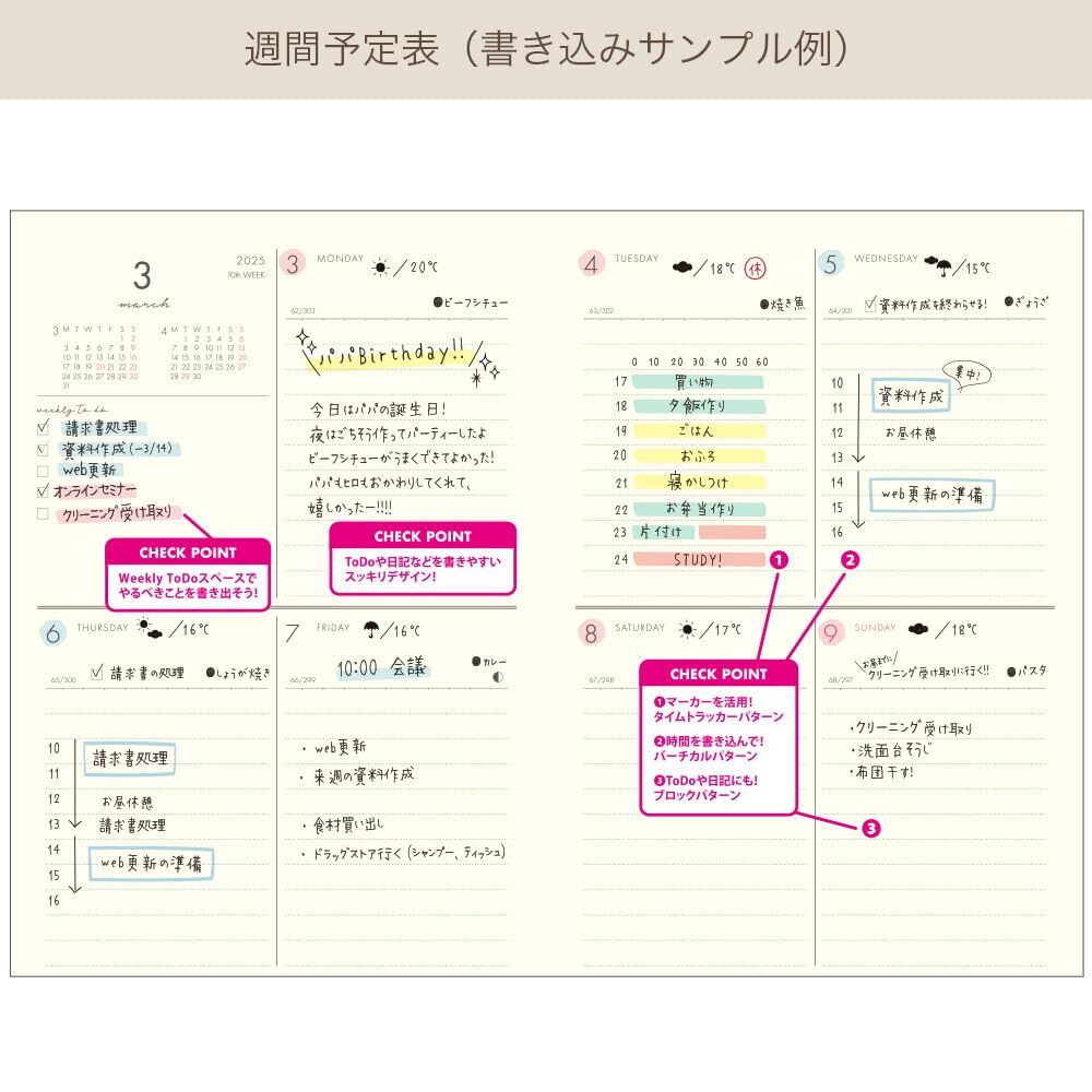 2503KPR-WH ホワイト プリュネ ウィークリー B6 3月始まり 2025年 手帳 ラボクリップ 收藏
