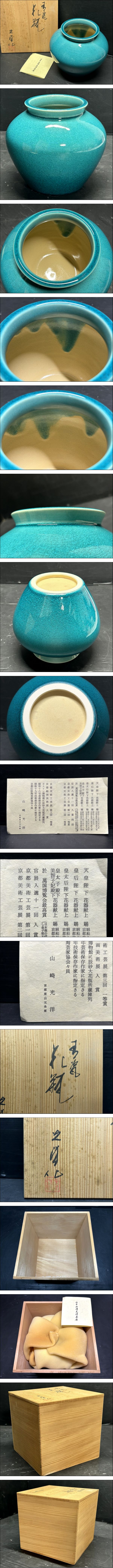 美品/未使用? 京焼 山崎光洋 作 青磁 花瓶 栞/共箱付 花器/花入/飾壺/華道茶道具/和室/床の間/京都伝統工芸美術/年代物/時代物 | |