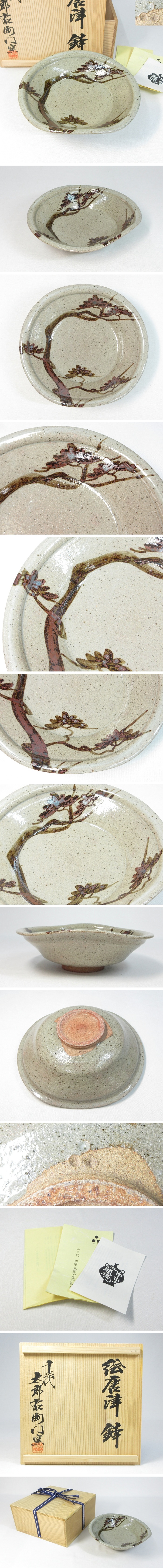 【B0521c】唐津焼 十三代 中里太郎右衛門窯 絵唐津 鉢 茶道具 菓子鉢 共箱 栞付き 即決 送料無料 收藏