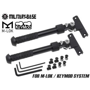 Harris ハリス 2脚 二脚 BIPOD 変換 コンバート レイル アダプター アタッチメント マウント サバゲー サバイバルゲーム キーモッド エムロック MLOK 商品説明 ITEM INFO ハンドガード両サイドに取り付ける分割式バイポッド MILITARY BASE HSスタイル サイドマウント スイングバイポッド for KEYMOD/M-LOKです。KeymodスロットあるいはM-LOKスロットに取り付け可能です。 バハンドガードの左右両サイドに取り付ける分割式バイポッドです。マウントは一つでKeymodスロットとM-LOKスロット、どちらでも取り付けが可能なようデザインされています。20mmレールセクション不要で直接マウントできます。 脚はスイング式で90°ずつの3段階調節が可能です。長さ調整も可能でロック解除ボタンを押すとシュパッと最大長になり、それから6段階の任意の位置に調節が可能です。 懐かしいHarrisタイプなデザインの脚でモダンなのにちょっとオールドスクールな雰囲気を醸し出せます。 商品基本情報・スペック ITEM SPEC ●商品名 : MILITARY BASE HSスタイル サイドマウント スイングバイポッド for KEYMOD/M-LOK ●商品番号 : H6114B ●ブランド : MILITARY BASE(ミリタリーベース) ●カラー : BK(ブラック) ●対応 : Keymod/M-LOK システム ●材質 : アルミ、スチール ●重さ : 284g ●脚長 : 210~290mm(スイング基部ボルト→脚先端) 注意事項 ITEM NOTE ∇ご購入時の留意事項 ※商品はすべて点検してからのお届けになります。商品によってはパッケージの開封等を行う場合もございますことをご了承ください。 ※商品には万全を記しておりますが、万一不備な点がございましたら、お手数ですがお問い合わせフォームにてご連絡頂ますようお願い致します。なお、海外製品につきましては、輸入時についた若干の傷、痛み等が見られる場合がございます。 国内製品のような完全品をお求めの方はご遠慮下さい。 ※商品が適合外であった場合、またはお客様都合による交換・返品・返金は出来ません。よくお確かめの上、ご購入下さい。 ※モニター環境により、実際の商品の色と若干異なる場合がございますのでご了承下さい。 ※他サイトでも同時販売の為売り切れの際はご了承下さい。 ※売り切れの際は早急にご連絡させて頂きます。(当社休業日を除く) 関連商品 RELATED ITEM |