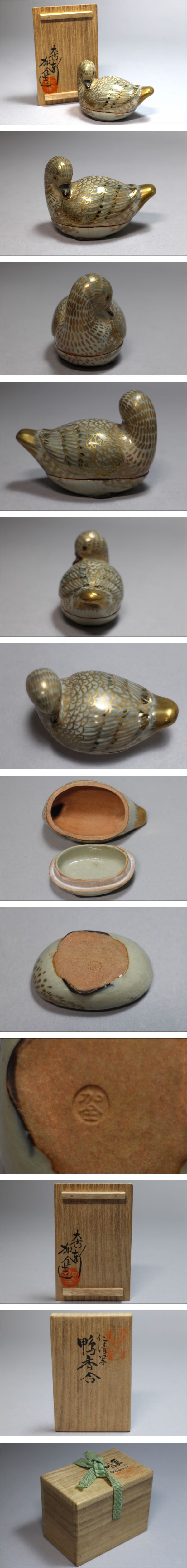初代 滝口加全 仁清写 鴨 香合 共箱付 收藏