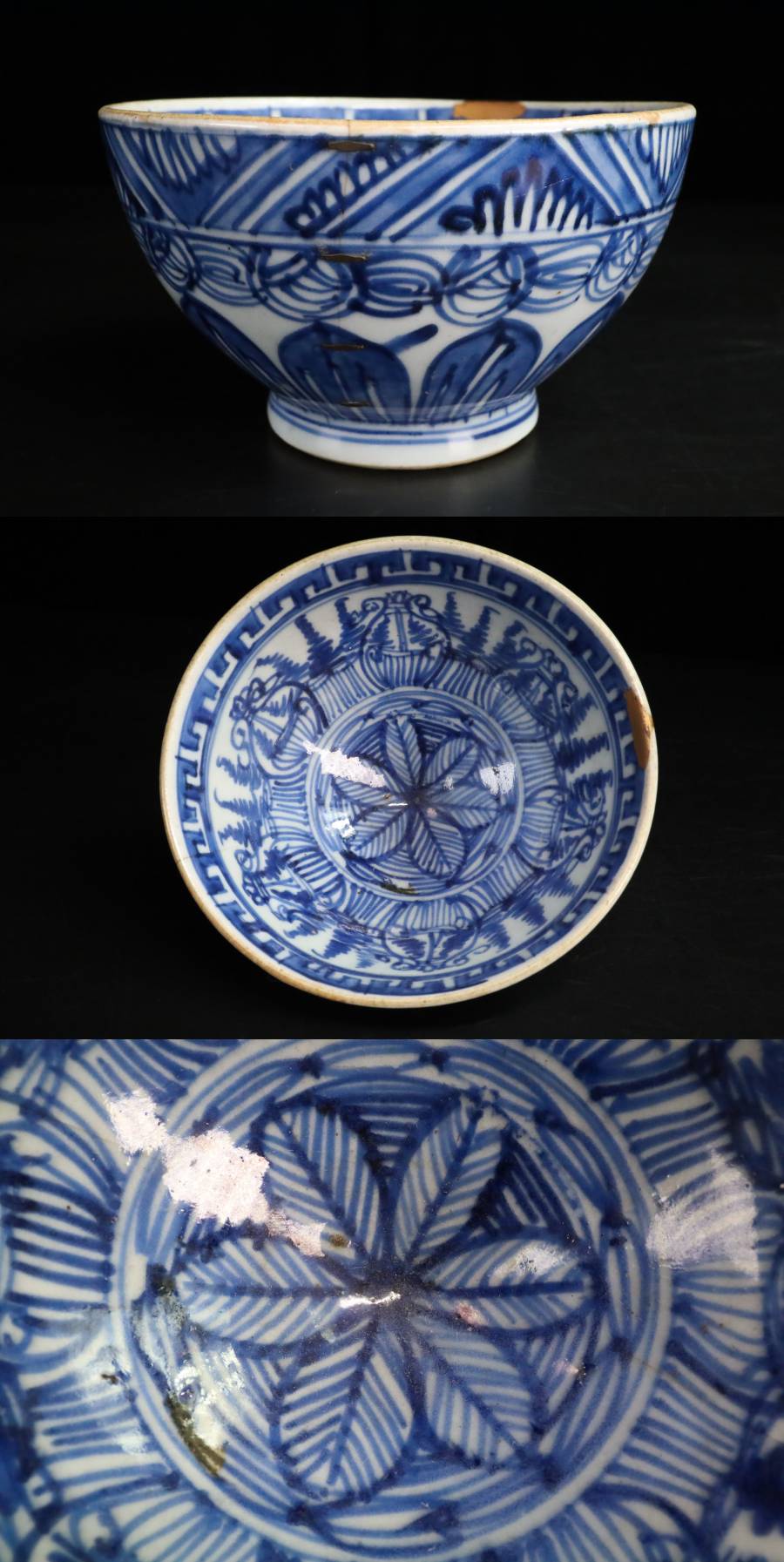 ◇雅◇ 中国美術 南京染付 古染付 雁木鉢 菓子鉢 幅14cm/339g 時代物 古玩唐物 菓子器 茶道具 鉢 染付 /HK.25.9 [A185.2]WQ4 收藏