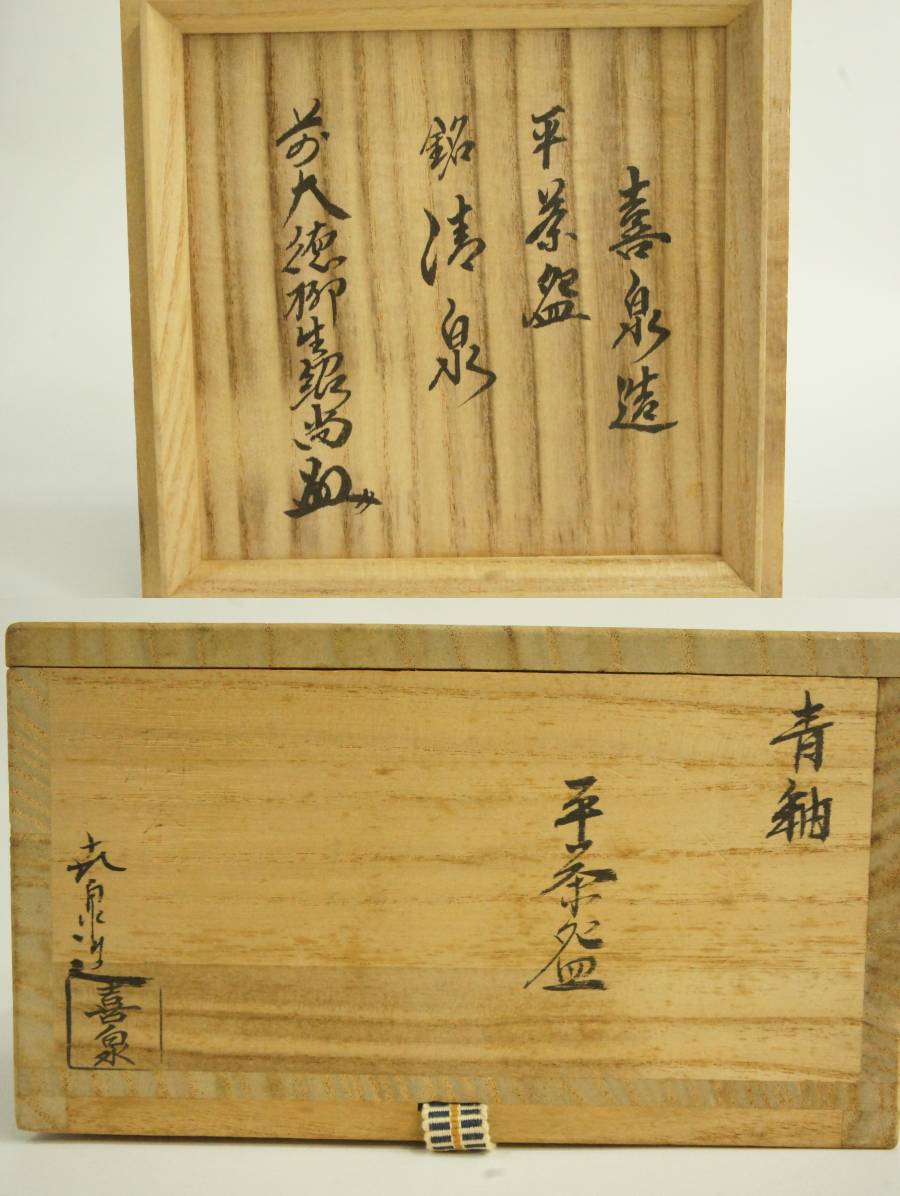 蓋裏に「喜泉造 平茶碗 銘 清泉」と、書かれています。