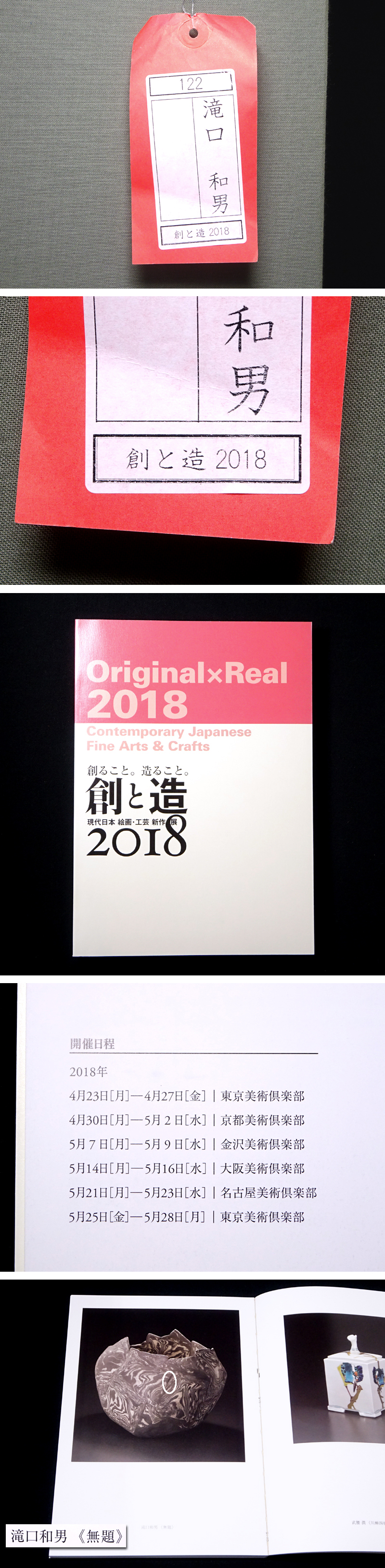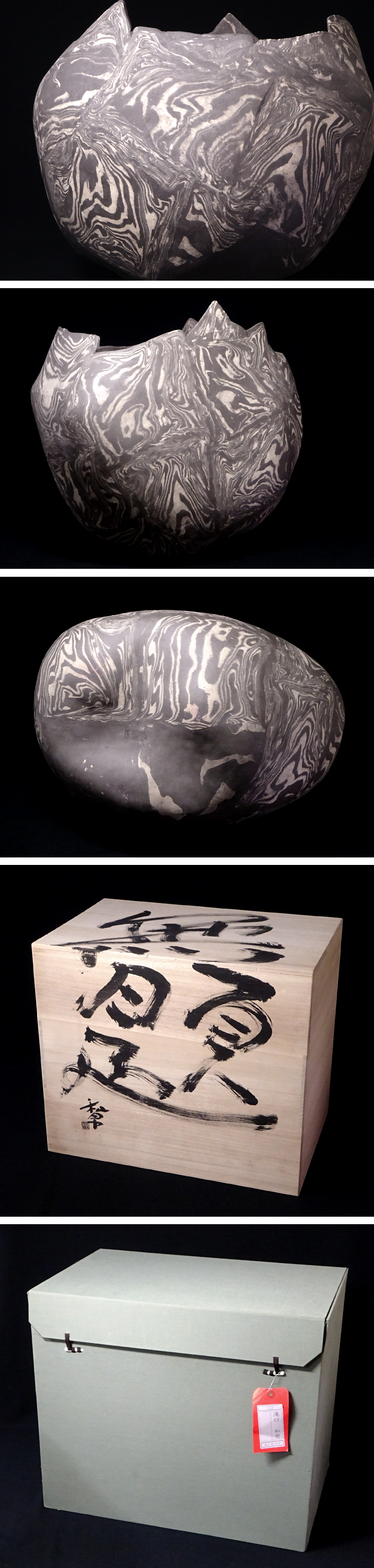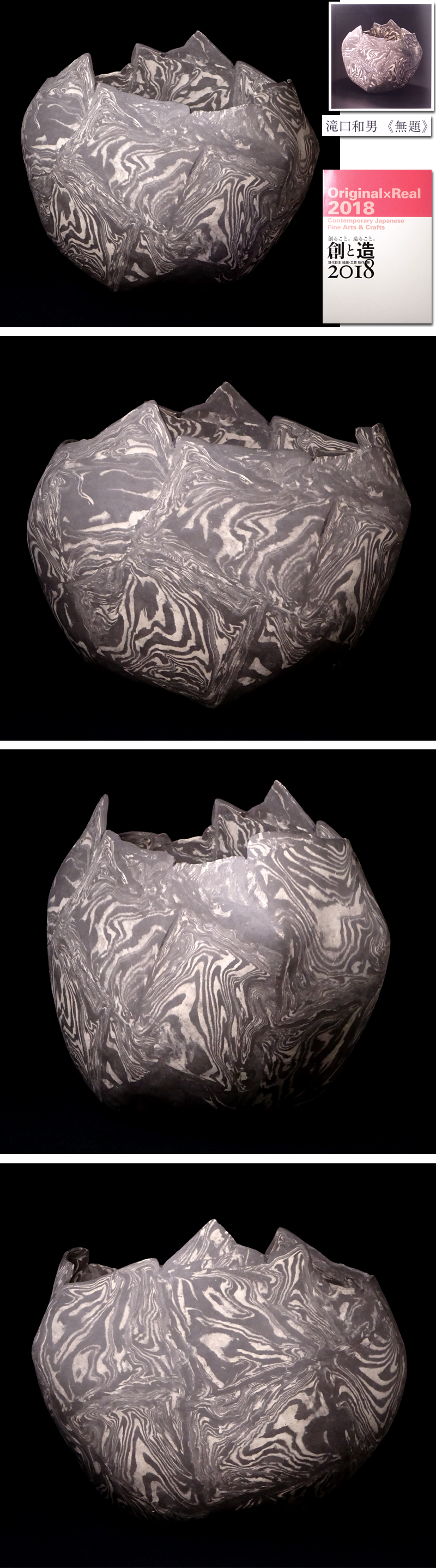 慶應◆“創と造2018”出展現物【滝口和男】秀逸作 大型コンテンポラリーオブジェ『無題』花器 図録所載品!完全一点物!共箱付 收藏