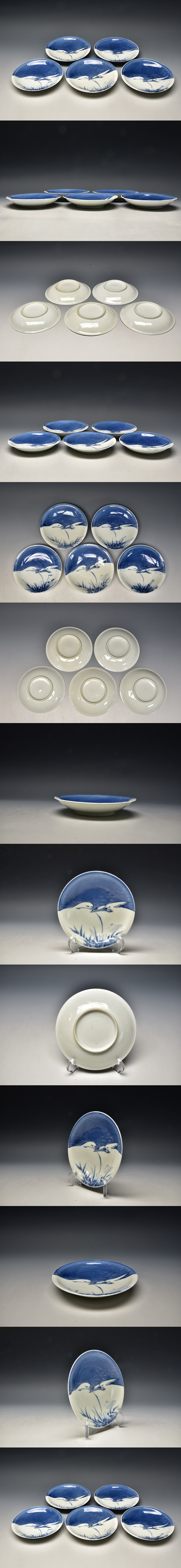SP6389 平戸焼 青華 鳥文 組皿 皿 銘々皿 向付 五客 收藏