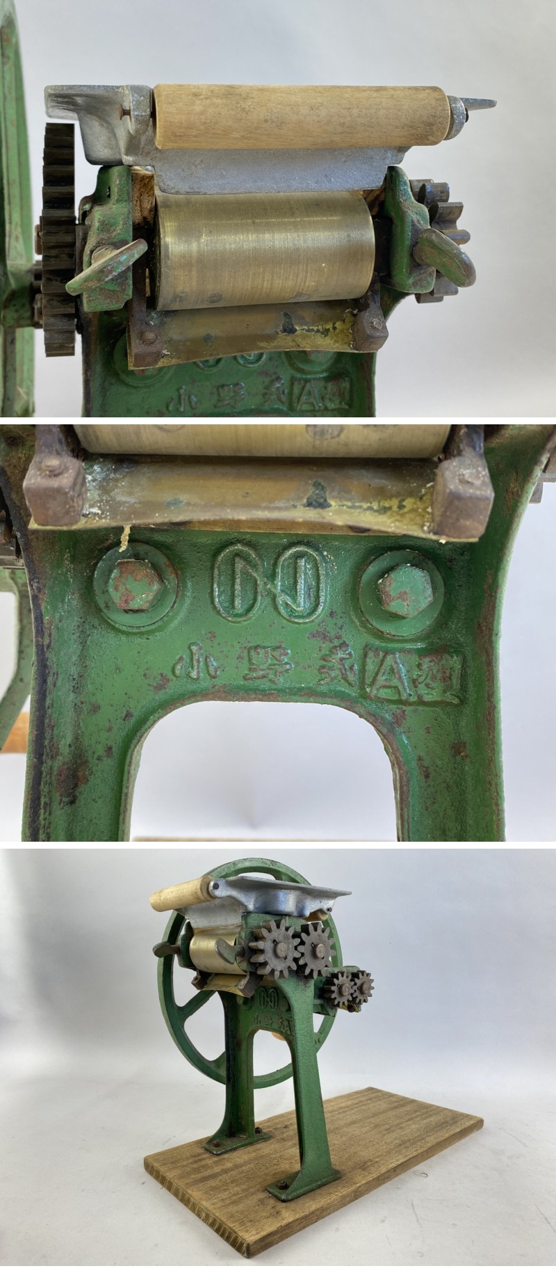 ac498 小野機械製造所 小野式 A型 製麺機 片刃 丸ハンドル付 うどん そば 手動 手回し レトロ 調理器具 收藏