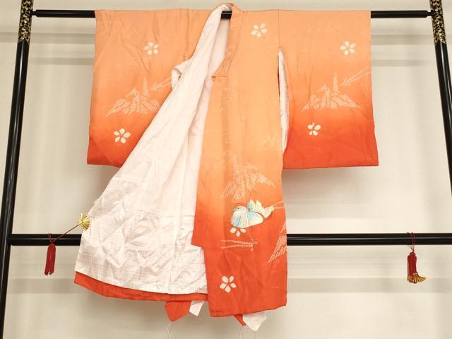 平和屋着物[]お宮参り 女の子 祝着 産着 初着 のしめ 絞り 刺繍 鴛鴦花文 暈し染め 金銀糸 逸品 AAAU5588ja 收藏