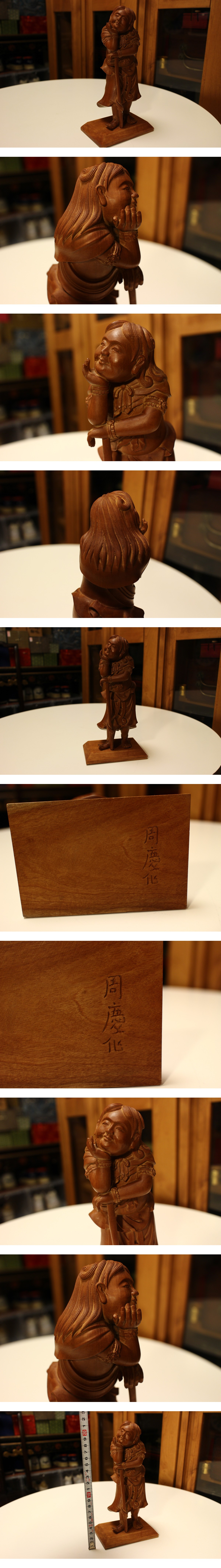 仏師周慶作 木彫像童像 (状態良好) 仏像仏道具置物朝鮮古写経香道具茶道具沈香唐物鉄瓶数珠朱泥白磁青磁天目硯 收藏