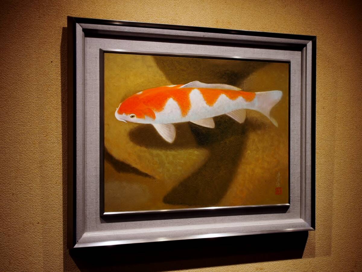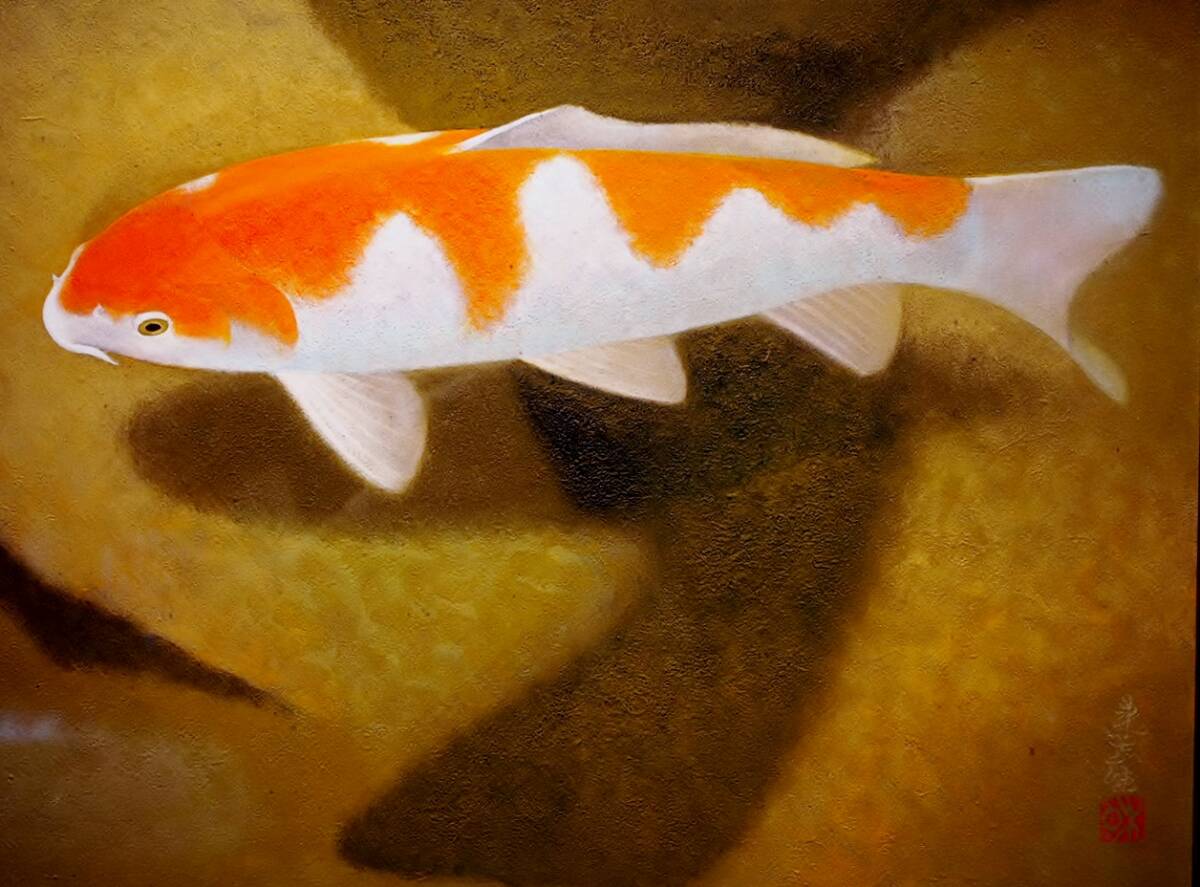 【真作】 室井東志生 「鯉」 10号 共シール 師・橋本明治 (島根) 福島県出身