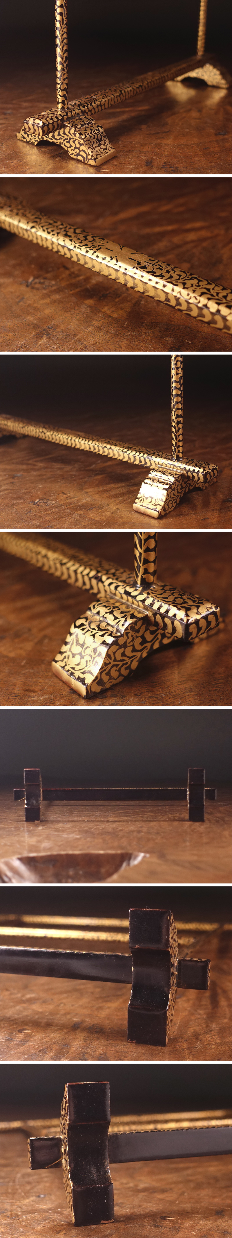 本作品は江戸時代後期~明治時代に制作された七澤屋謹製の大の字牡丹唐草蒔絵衣桁です。