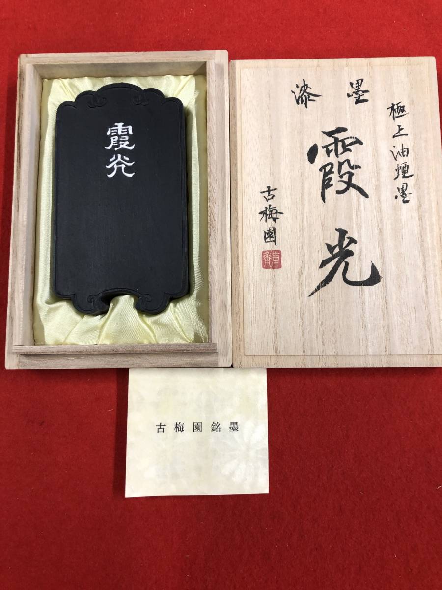 古梅園 書道墨 1979年製造古墨『霞光墨』墨匠 吉田佐太郎造 漆墨・極上油煙墨 稀少古墨 未使用・新品保管品 收藏