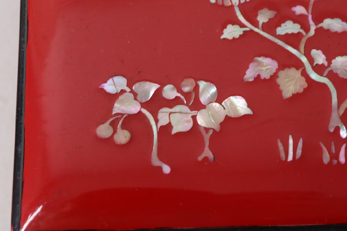 中国美術工芸 螺鈿装飾 文箱 花鳥図 朱塗り 幅19cm 葉書箱 小物箱 10-C106 收藏