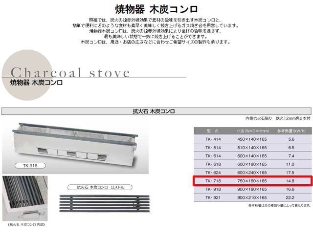 【未使用品】照姫 抗火石 木炭コンロ(焼鳥器) TK-718 750x180x165mm 鉄灸2本付 14.8kW相当 串焼機 炭焼台 【長野発】 收藏