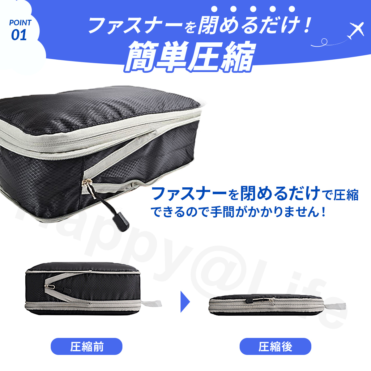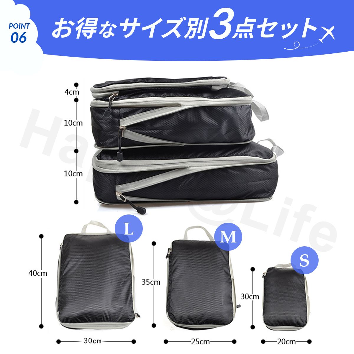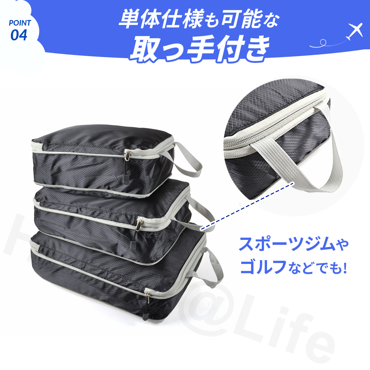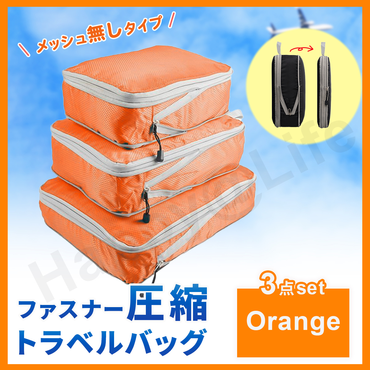 圧縮バッグ ファスナー トラベル ポーチ 収納ポーチ 3個セット 圧縮袋 Orange メッシュ無し 收藏