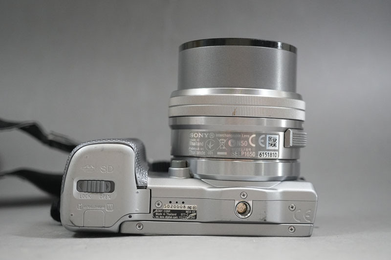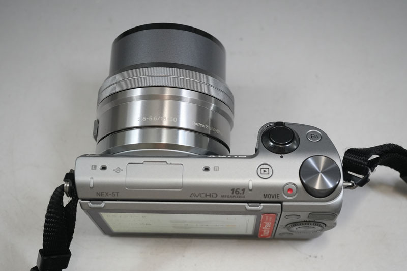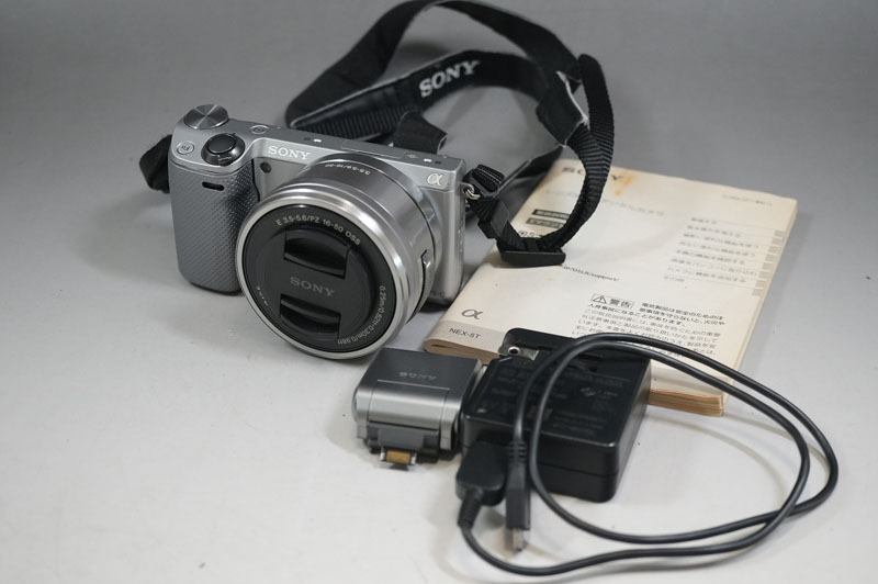 1円~【K613】SONY/ソニー α NEX-5T SELP1650(E 3.5-5.6/PZ 16-50 OSS) シルバー 付属フラッシュ(HVL-F7S)・取扱説明書付