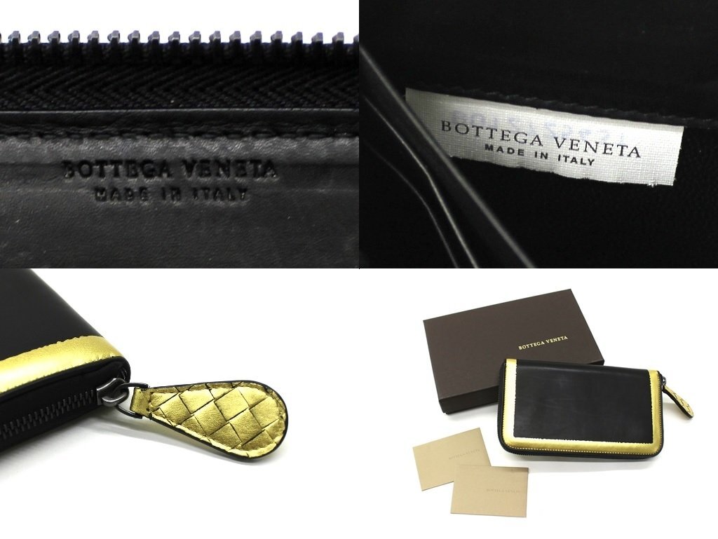 ●13万新品◆ボッテガヴェネタ◆イントレチャート ラウンドジップ大容量長財布 バイカラー ブラック×ゴールド 黒金 1円 收藏