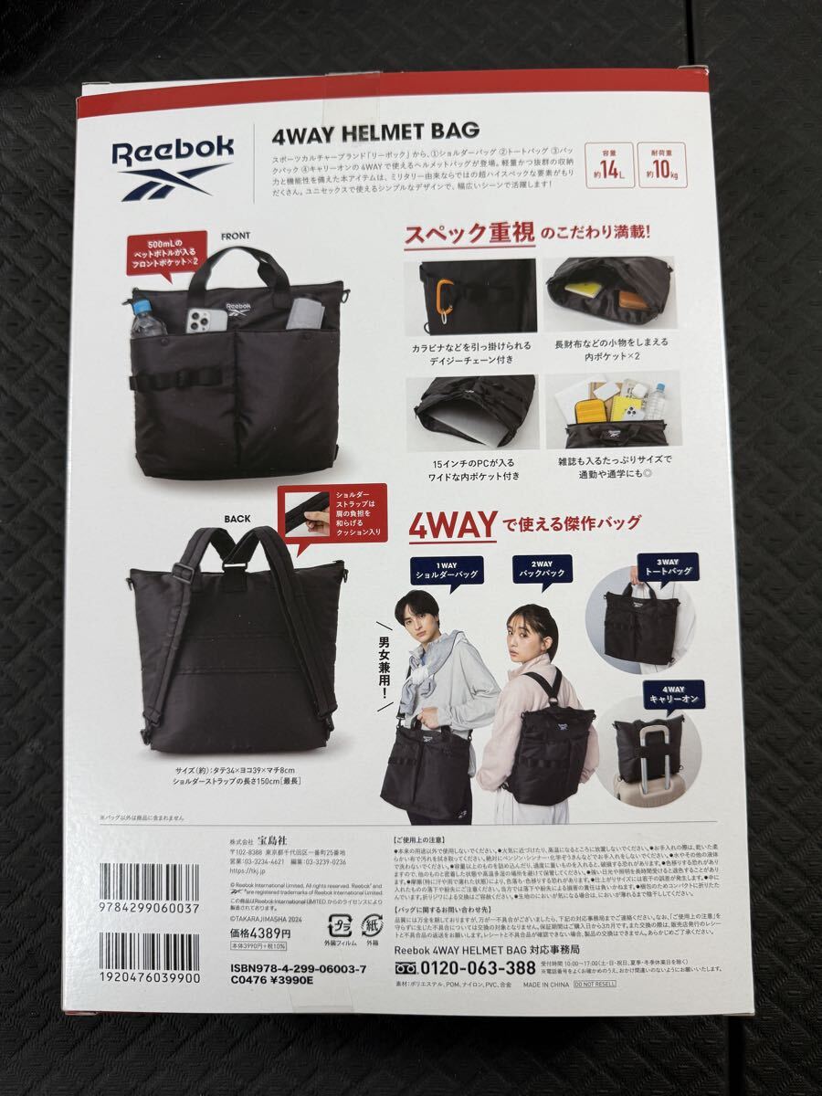 宝島社 リーボック 4way ヘルメットバック 黒 元箱有り 中古品
