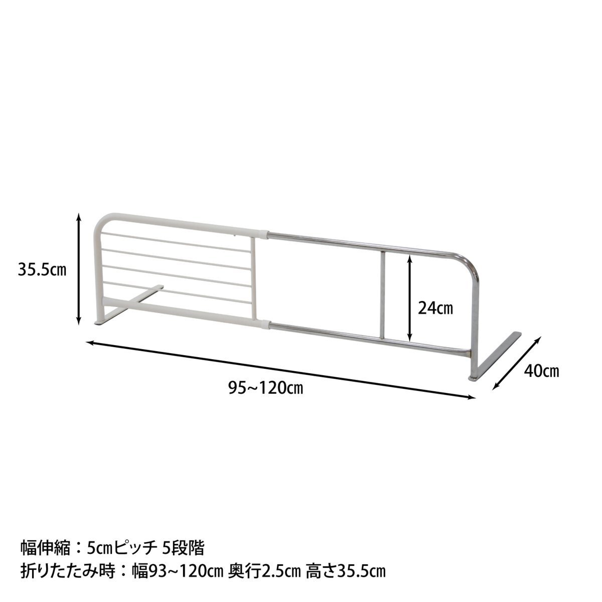 送料無料 ベッドガード 横伸縮 スライド式 布団ずり落ち防止 子ども落下防止 介護 補助 スチール 幅95~120cm 高さ35.5cm ホワイト 白/新品 收藏