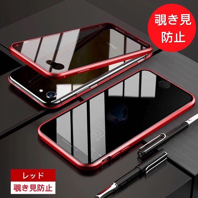 iPhone7/8/SE2/SE3ケース 覗き見防止 両面強化ガラス 全面保護 アルミ合金 磁気吸着 耐衝撃 iPhoneX S 11 12 13 14 15 Pro max Plusケース 收藏