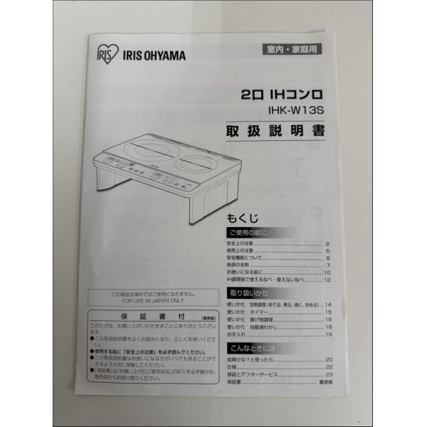 ▲営AD227-140 IRIS OHYAMA アイリスオーヤマ 2口IHコンロ / IHK-W13S-B / 2022年製 / IHクッキングヒーター / ブラック / 動作確認済 / o 收藏