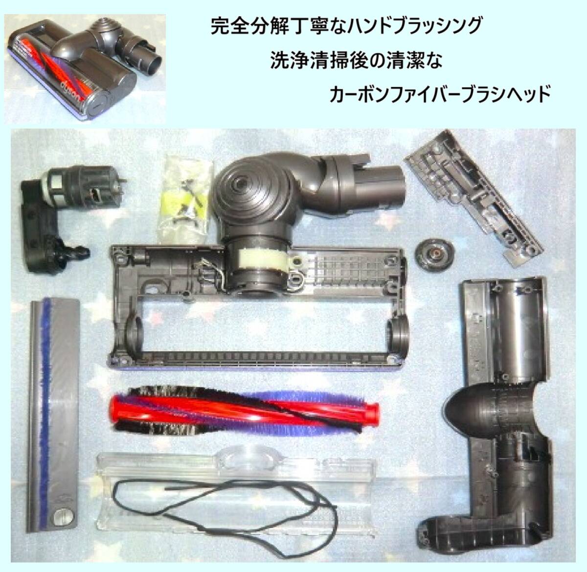 ①本体(サイクロン/モーター部)全分解、②クリーナーヘッド全分解、③他全アタッチメント分解、④(①~③)の全て液体洗剤にて細部までブラッシング洗浄清掃(完璧な汚れ除去)、⑤全てを次亜塩素酸ナトリウム水溶液に5分前後どぶ漬け除菌実施、⑥全て水洗い実施、⑦フローラルの香り水溶液に5分前後どぶ漬け、⑧屋外天日干し(24時間以上)、⑨完全クリーニング品の組立前全写真撮影、⑩全部品の組立て、⑪完成商品のオークション展示用写真撮影、⑫梱包資材の製作、⑬梱包実施、⑭オークション全出品物写真編集、⑮オークション出品