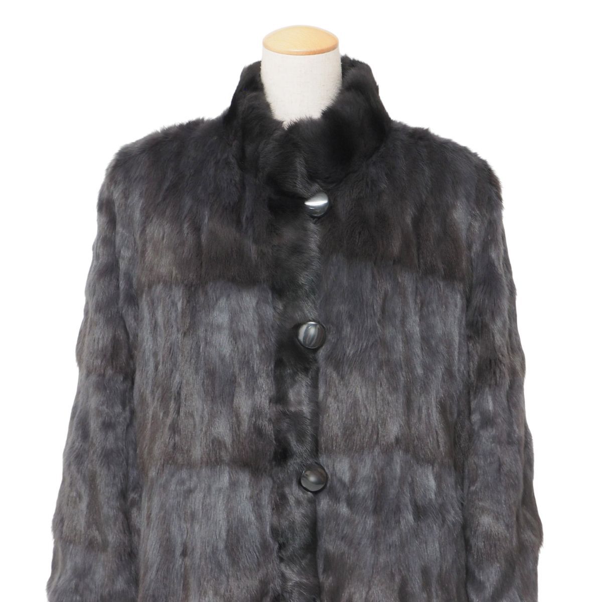 GS2850◇eff ダイトー リス × シルク生地 ファーコート ミドル丈 リバーシブルコート サイズM-L 毛皮コート グレー×ブラック系 收藏