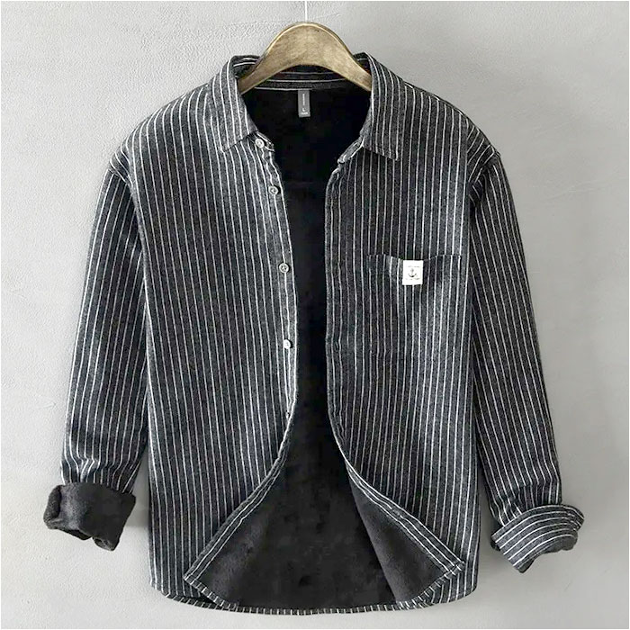 ☆ ブラック ☆ 3XL ☆ ボアシャツ 裏ボア シャツ メンズ 長袖 カジュアルシャツ 襟付き ストライプシャツ 長袖シャツ 父の日 おしゃれ 收藏