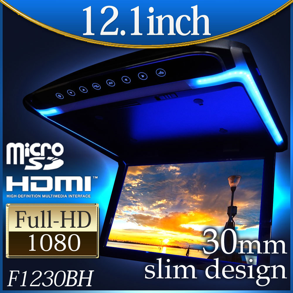 ★フリップダウンモニター 高画質 12インチ 12V 薄型 軽量 HDMI SD 対応 LEDバックライト液晶採用 F1230BH