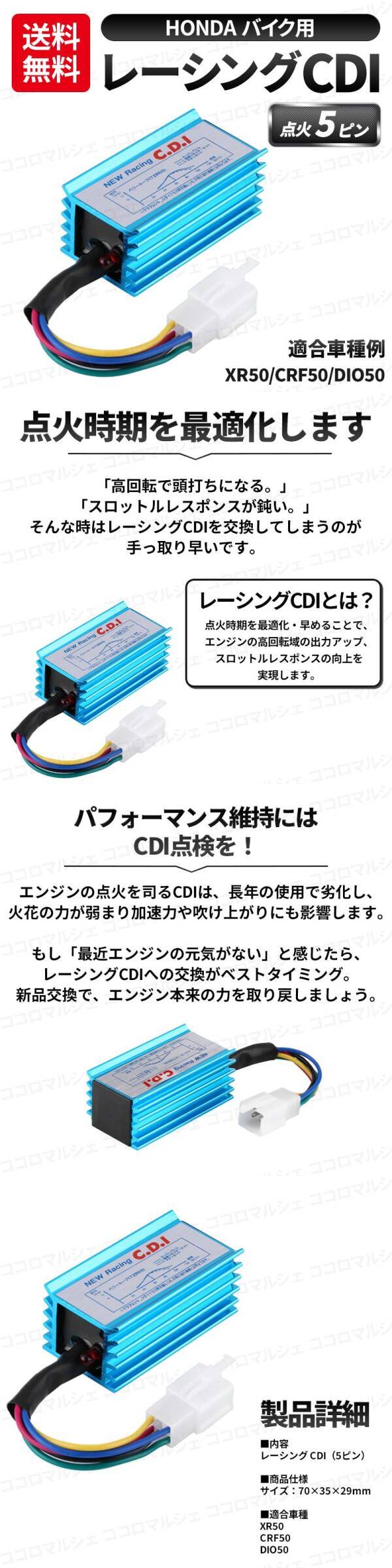 レーシング CDI 5ピン イグナイター ホンダ HONDA 点火装置 イグニッション エンジン ATV バギー モンキー ゴリラ 交流 XR50 CRF50 DIO50 收藏