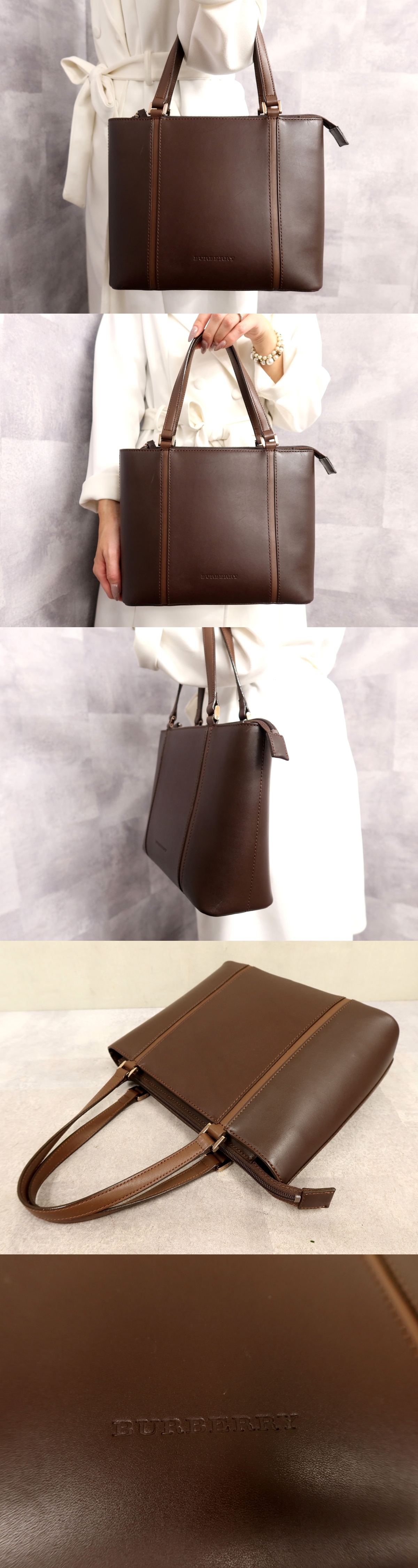 ●超美品●BURBERRY バーバリー●内ノバチェック●ロゴ型押し●カーフ レザー 本革●ハンド バッグ●ブラウン●ゴールド金具●B5●Js62460 收藏