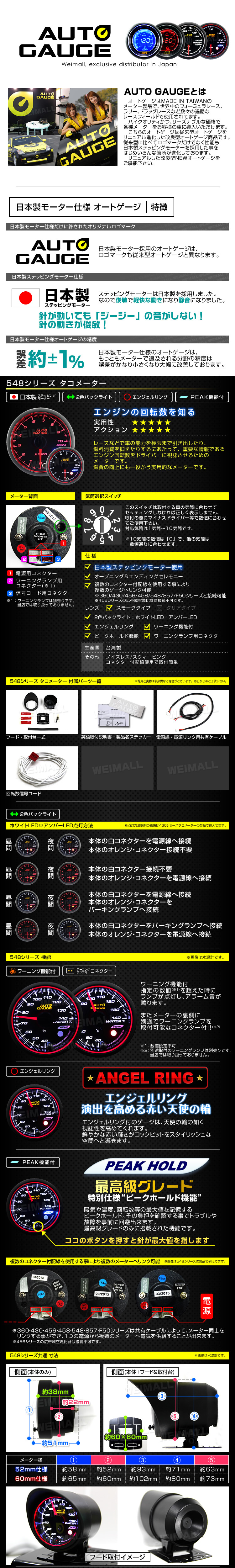 【限定セール】オートゲージ タコメーター 60mm 60Φ 日本製ステッピングモーター ピークホールド機能 エンジェルリング AUTOGAUGE 548 收藏