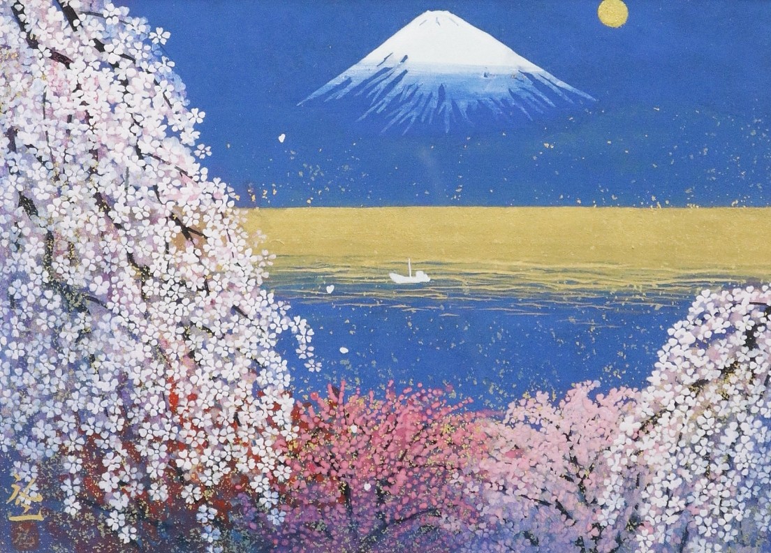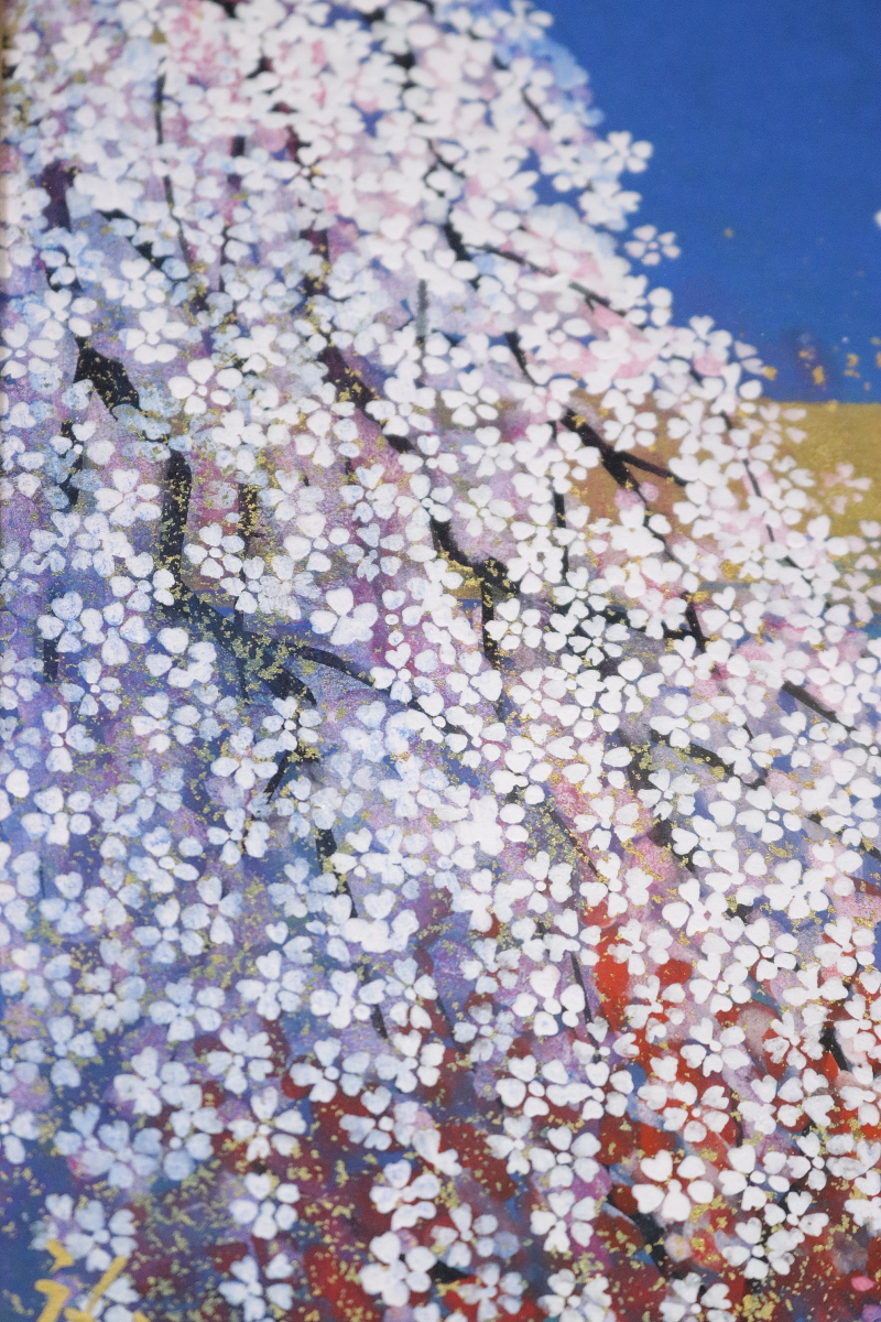 11675■【真作】平松礼二 「桜々記」 肉筆 日本画 共シール 紺綬褒章受章 フランス政府芸術文化勲章 額装 收藏