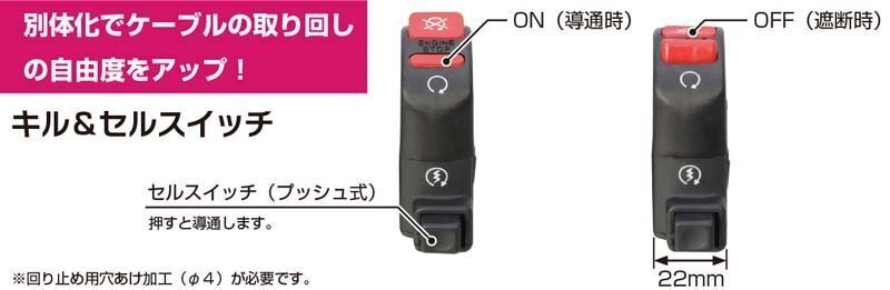 車種専用キル&セルスイッチはカプラーオンで装着可能。ハイスロットル化も実現。