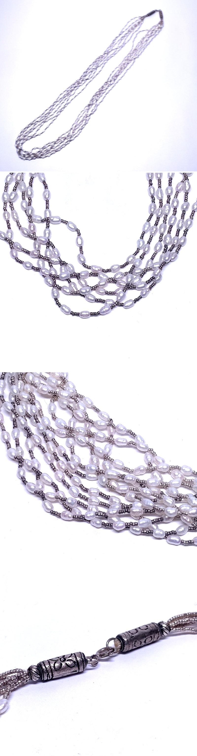 【侍】淡水真珠 淡水パール 6連 925刻印 ヒキワ金具 75㎝ ロングネックレス ケース付 20+922 收藏